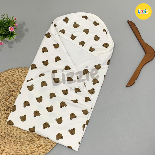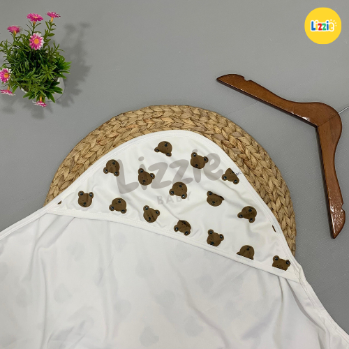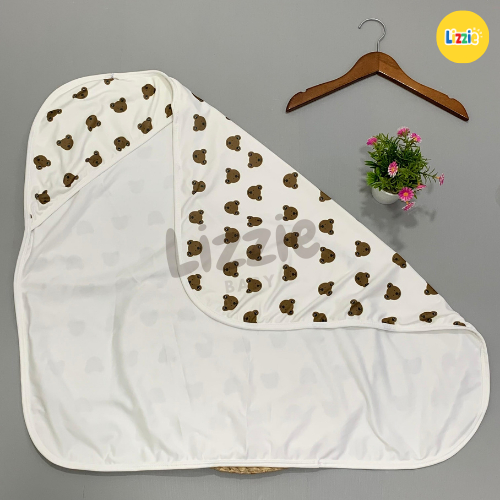 Lizzie Baby - Selimut Bayi Topi Bahan Halus Katun Motif Beruang Coklat