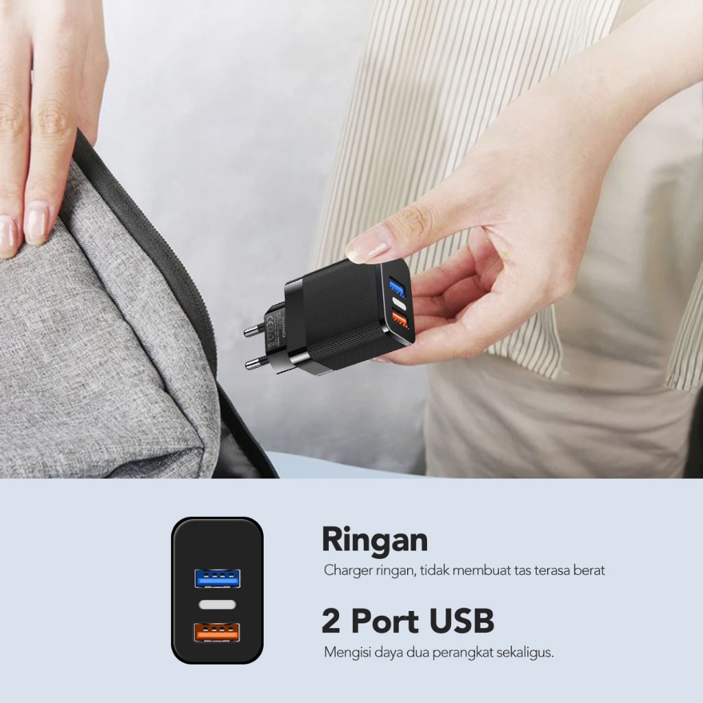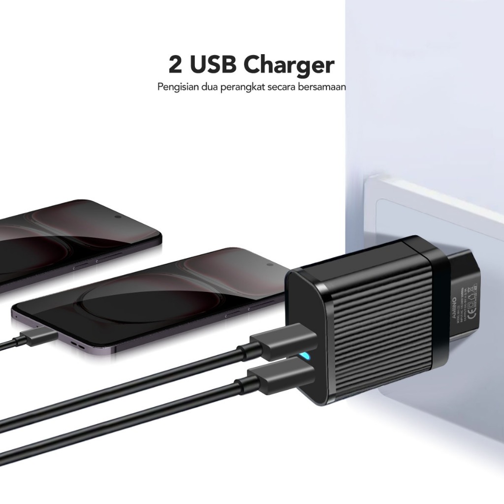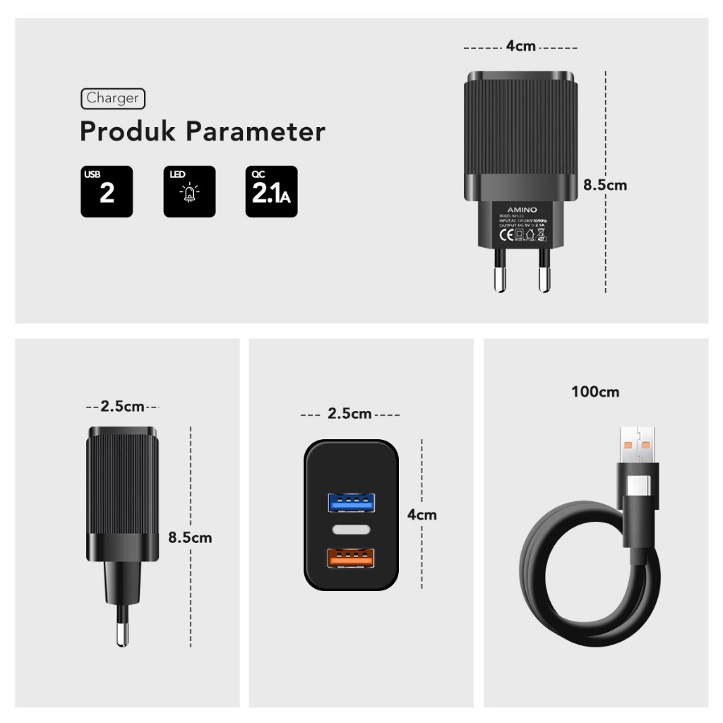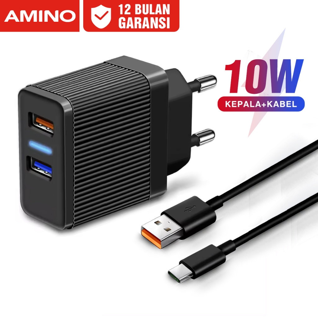 AMINO 10W Kepala Charger Mini Dual USB Charger EU Plug Output 2.1A TYPE C Kabel Fast Charger MH-23
