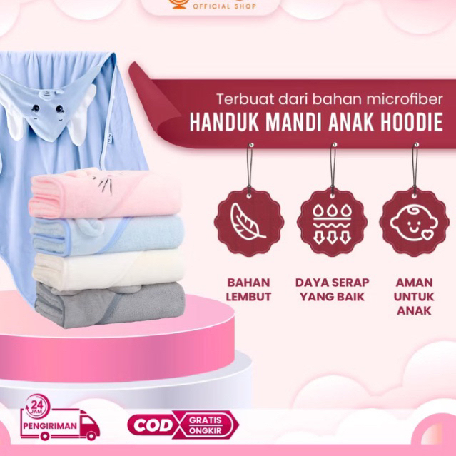 Handuk Mandi Handuk Murah Handuk Lembut HAnduk Bayi Kupluk Handuk Tebal Menyerap Air 0-6 Tahun