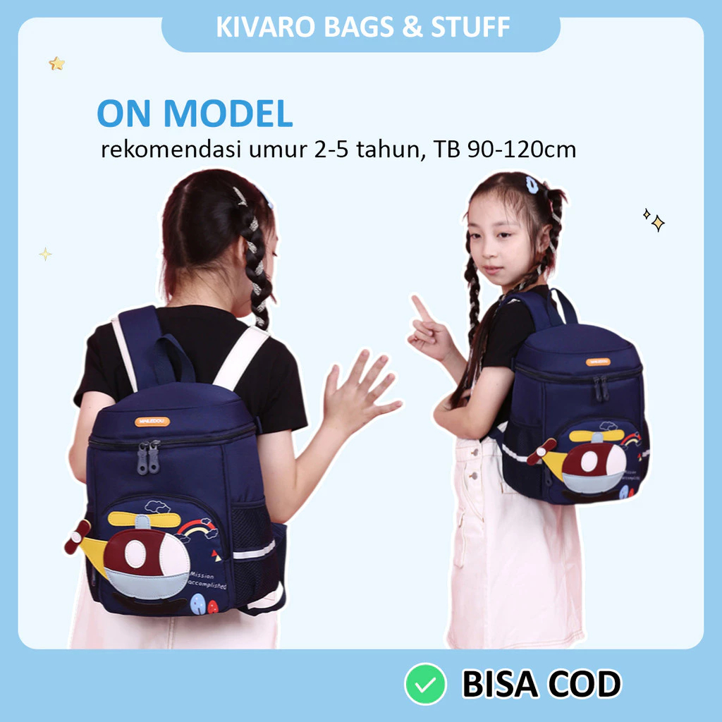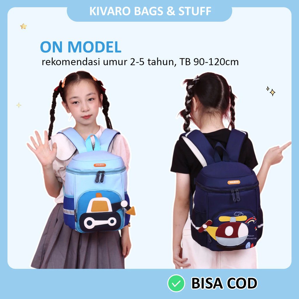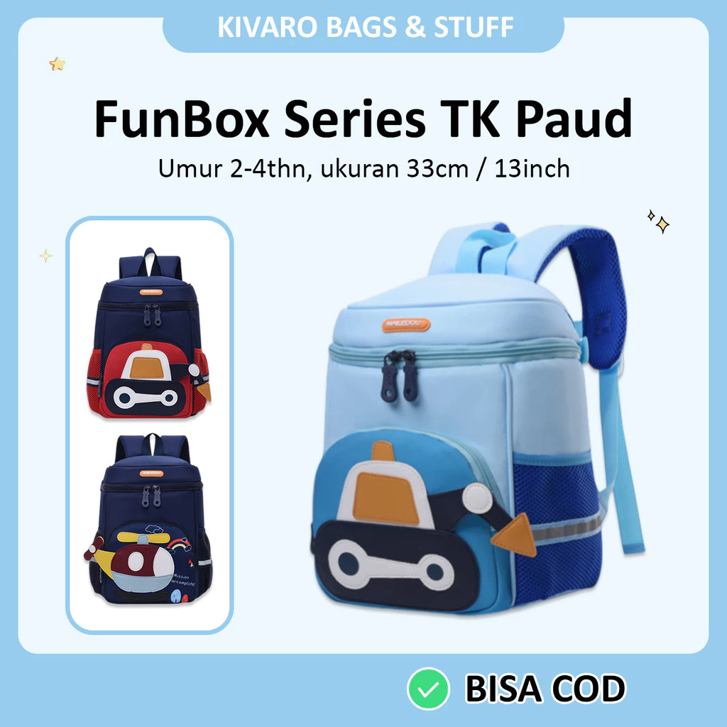 FunBox Series Tas Anak TK PAUD Motif Excavator & Helicopter Laki-laki Usia 2-5 Thn 33 cm 867