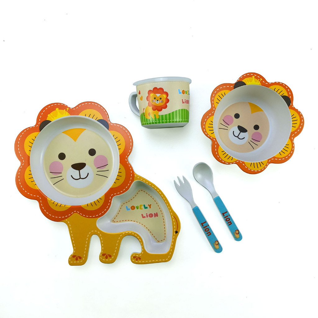 Bamboo Fiber Feeding Set Tempat Peralatan Makan Bayi Anak - LION - NB-04503