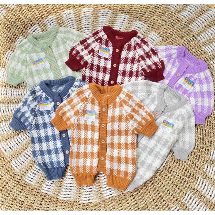 JUMPSUIT BAJU BAYI BARU LAHIR RAJUT PENDEK MOTIF KOTAK RAJUT 0 12 BULAN MAX BB 8KG ANAK CEWEK COWOK PROMO MURAH