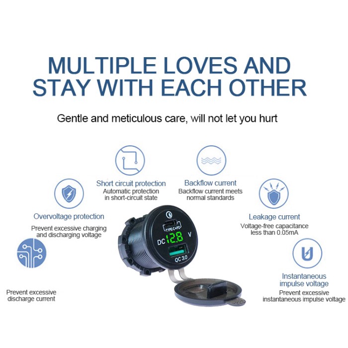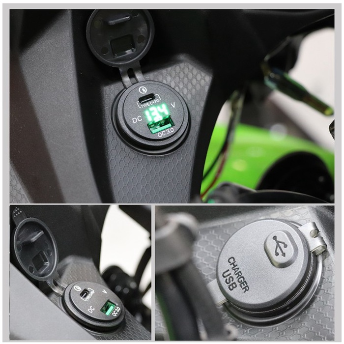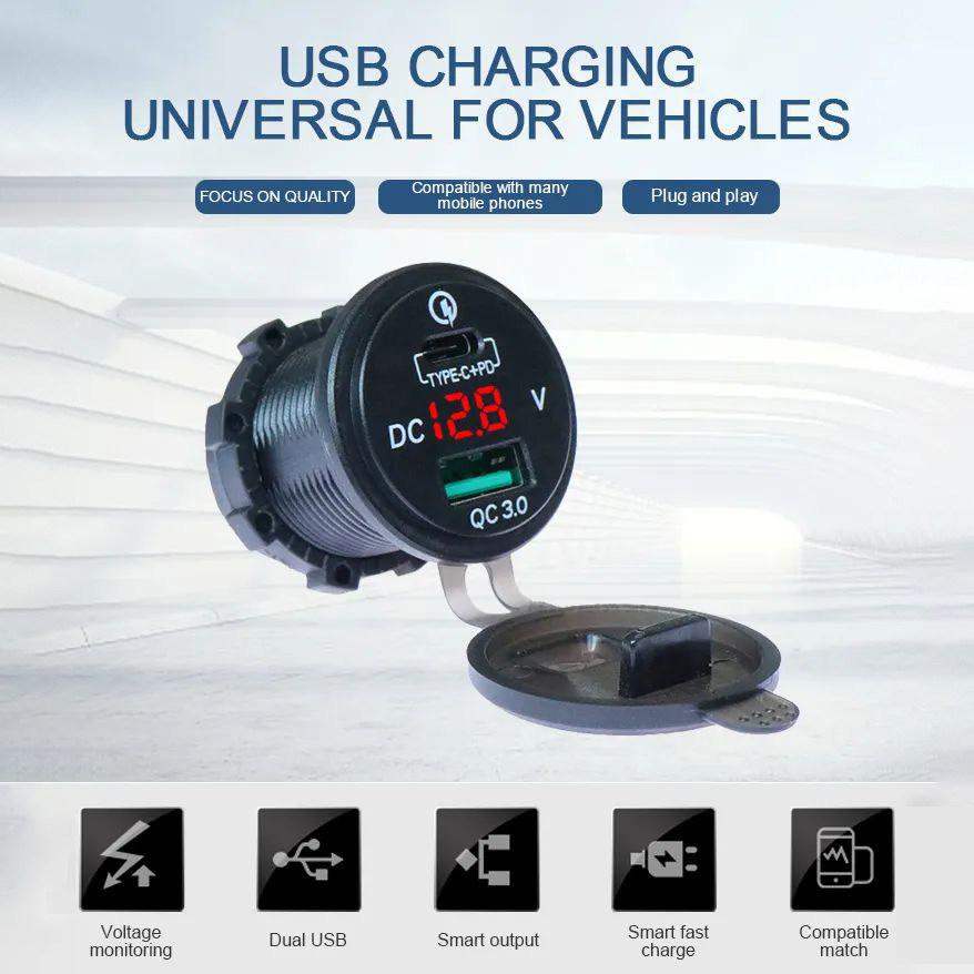 Quick Charger QC3.0 36W USB & Type-C Dengan Voltmeter Untuk Motor dan Mobil