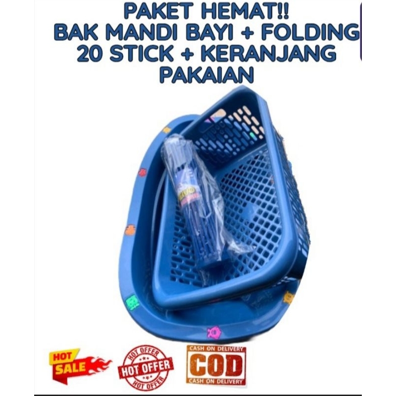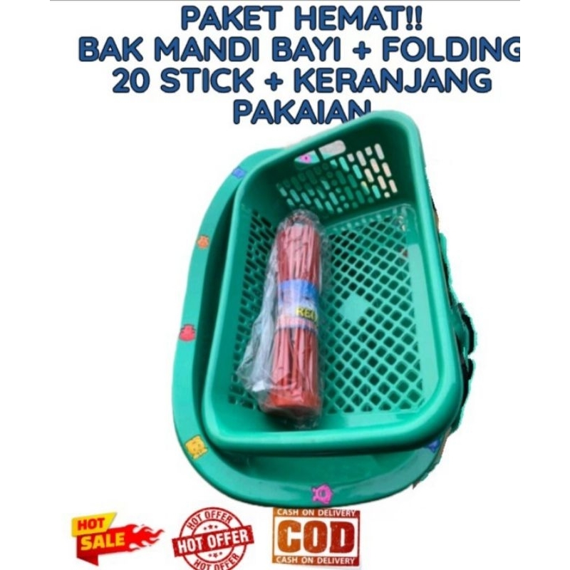 PAKET HEMAT BAK MANDI BAYI YUTAKA +KERANJANG BAJU+FOLDING PUTER/HANGER BULAT