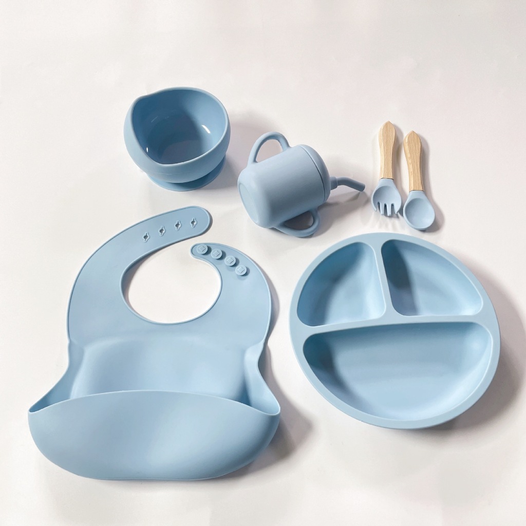 Set Peralatan Makan Anak Set Peralatan Makan 5/6-piece Dari Silikon Bayi Dengan Suction Cup, Garpu, Sendok, Bib, Sedotan