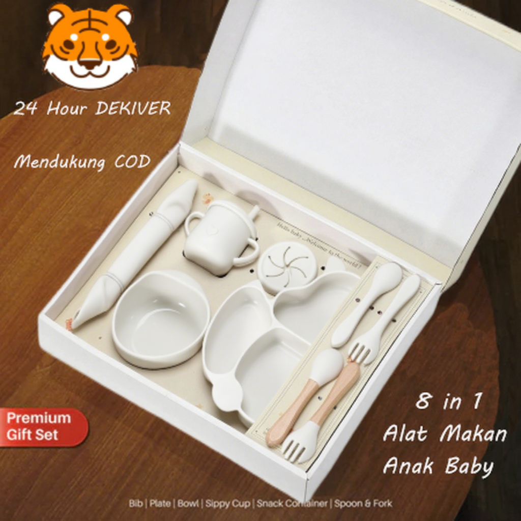 TIGERBABY 10in1 Baby Feeding Gift Set Kado Bayi Kan BOX Silikon Peralatan Tempat Makan Bayi