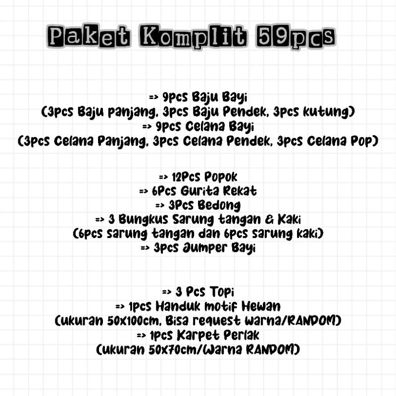 COCOPA BABY Paket 59PCS / 57PCS Paket Brojol Paket Lahiran Lengkap Baju Bayi dan Celana Bayi Baru Lahir New Born Cewek-C