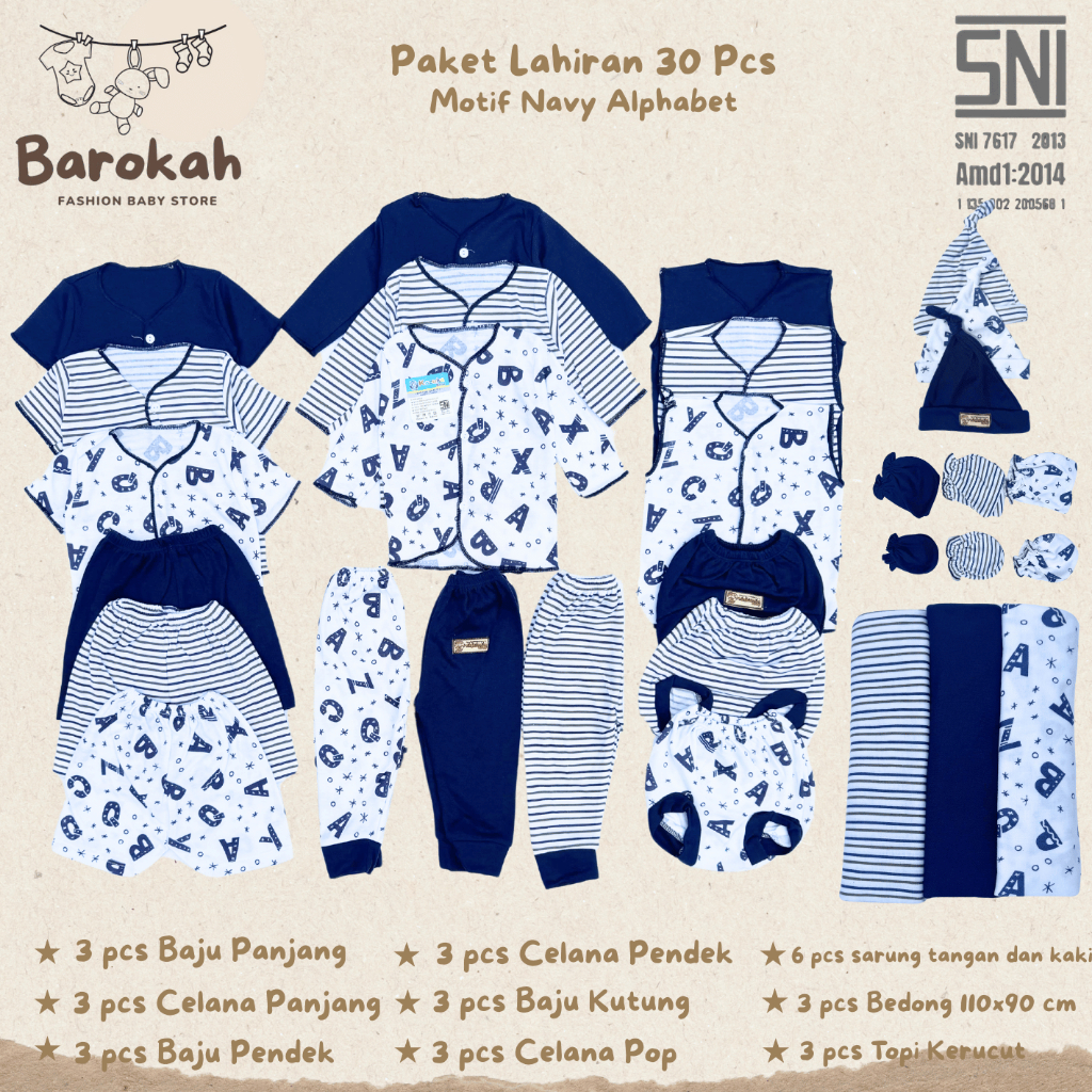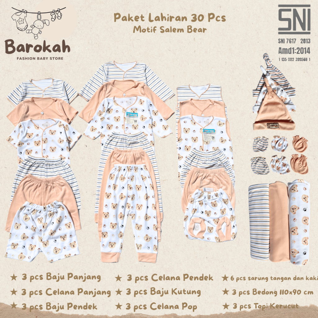 SNI 30Pcs Paket Lahiran Stel Baju Celana Bayi Topi Bayi Sartaki & Bedong Bayi - Barokahstore