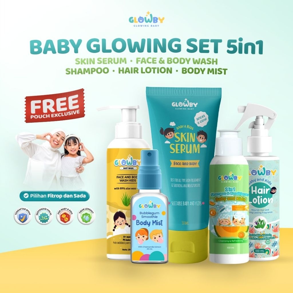 (Glowby) Free Pouch Exclusive Bundling Special Paket NewBorn Serum Hair Lotion Shampoo Face Body Wash And Body Mist