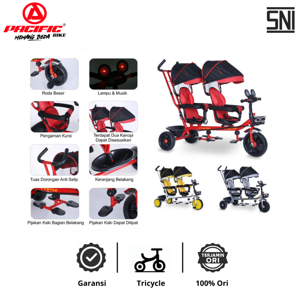Pacific Sepeda Roda Tiga Tricycle Anak Kembar Twins Stroller Exotic ET-8809