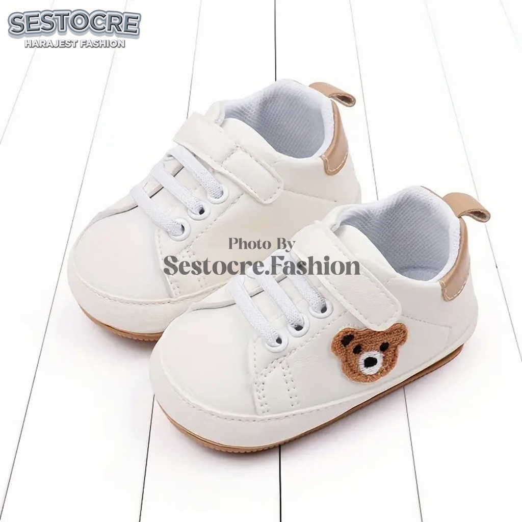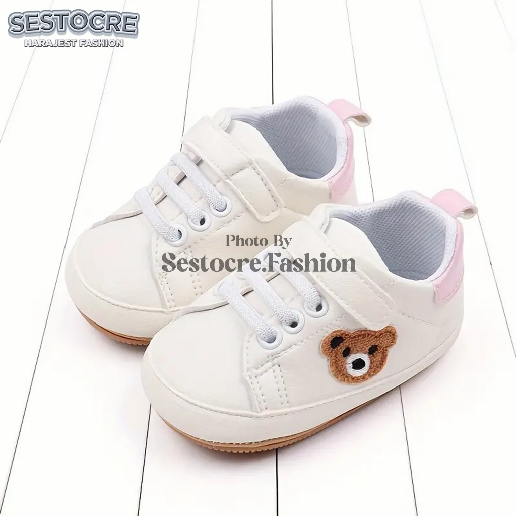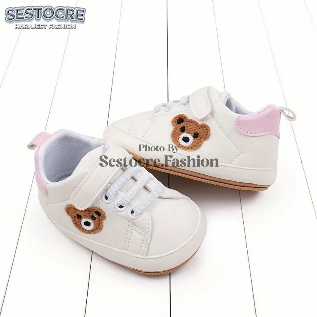 Sepatu Bayi Perempuan Laki Laki Berbahan Lembut Sol Anti Slip - Usia 0 3 6 9 12 Bulan Murah Berkualitas Design Teddy Bea