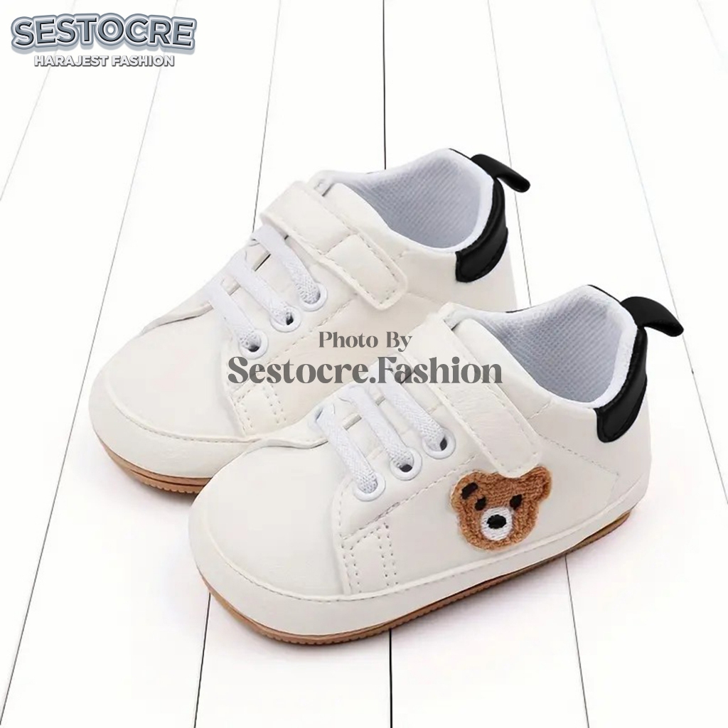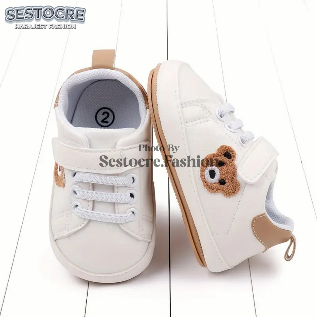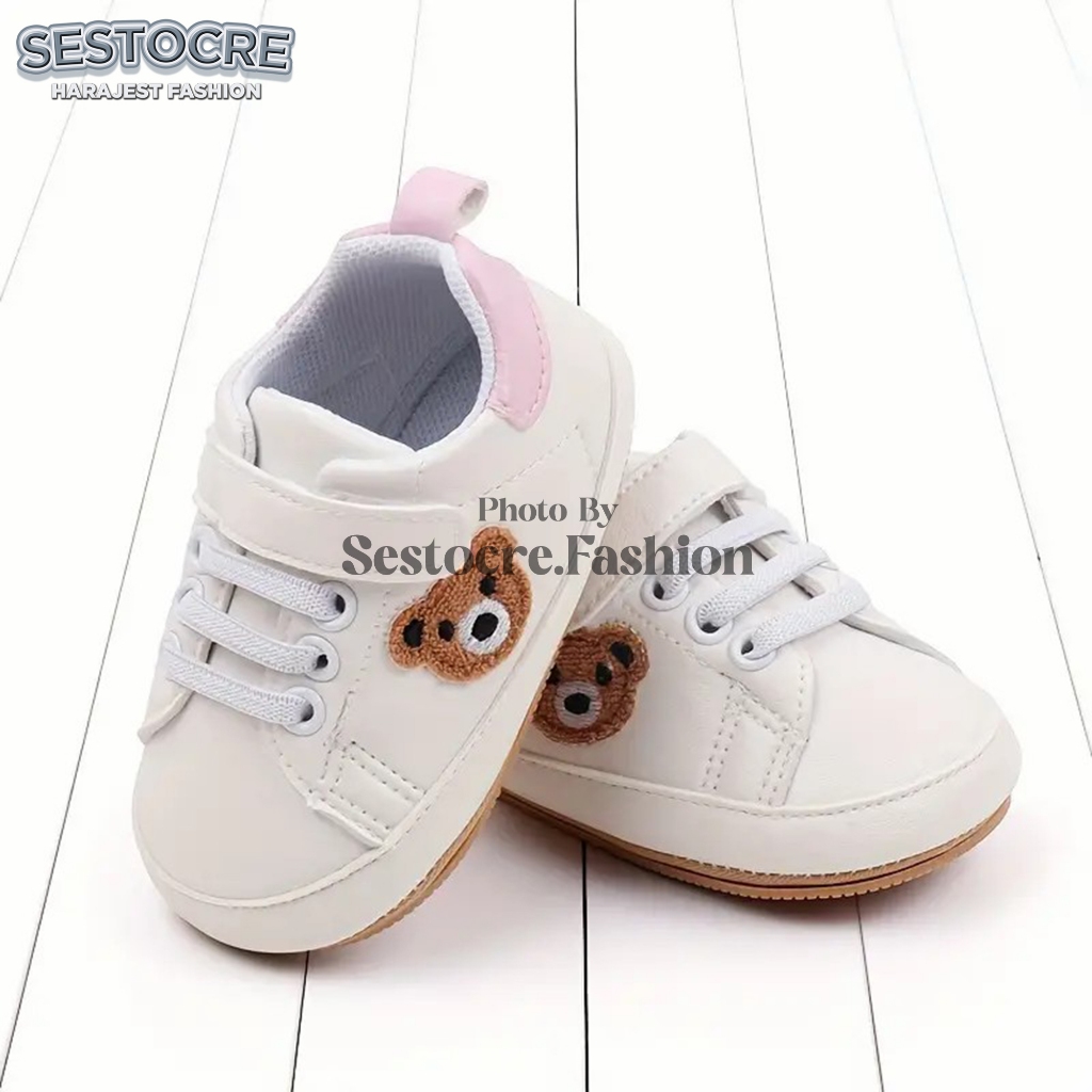 Sepatu Bayi Perempuan Laki Laki Berbahan Lembut Sol Anti Slip - Usia 0 3 6 9 12 Bulan Murah Berkualitas Design Teddy Bea