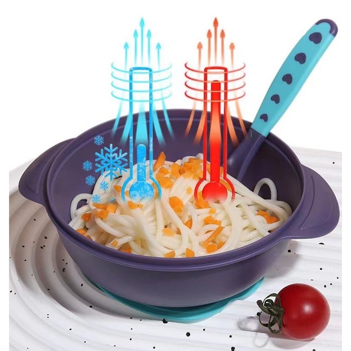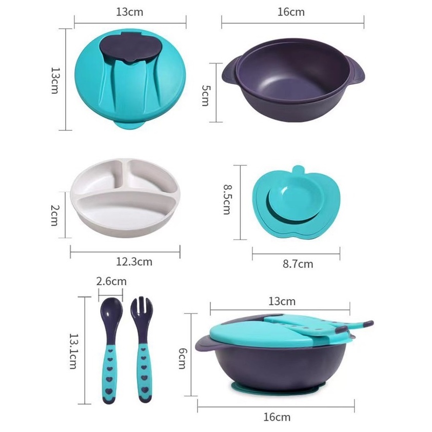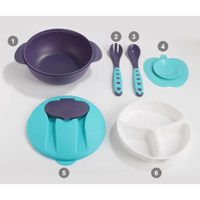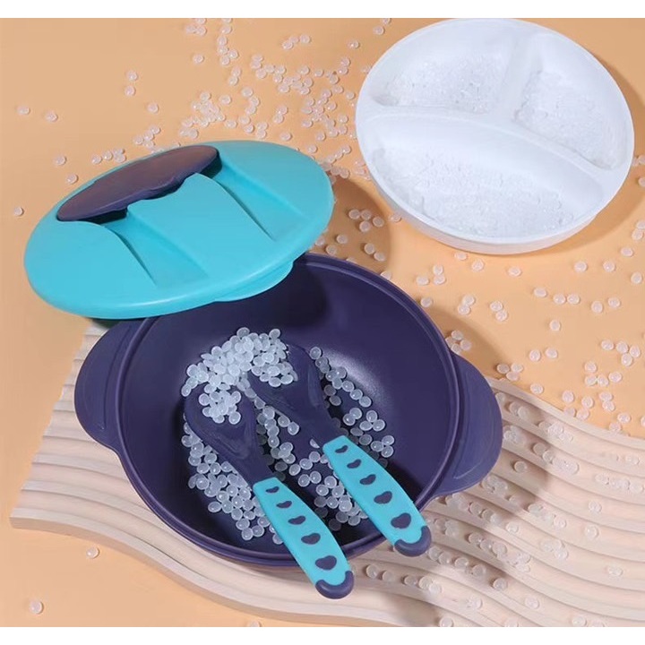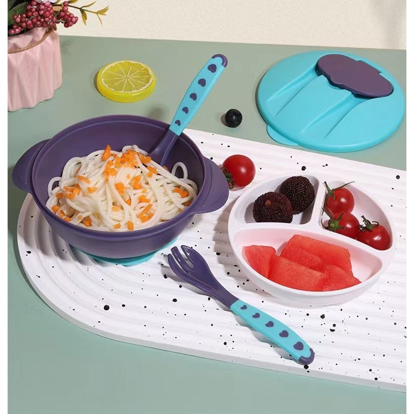 LKM545 Tempat makan bayi mangkok sekat set tutup sendok garpu dan suction silicone anti tumpah [1KG 10PC] LITTLE KUMA