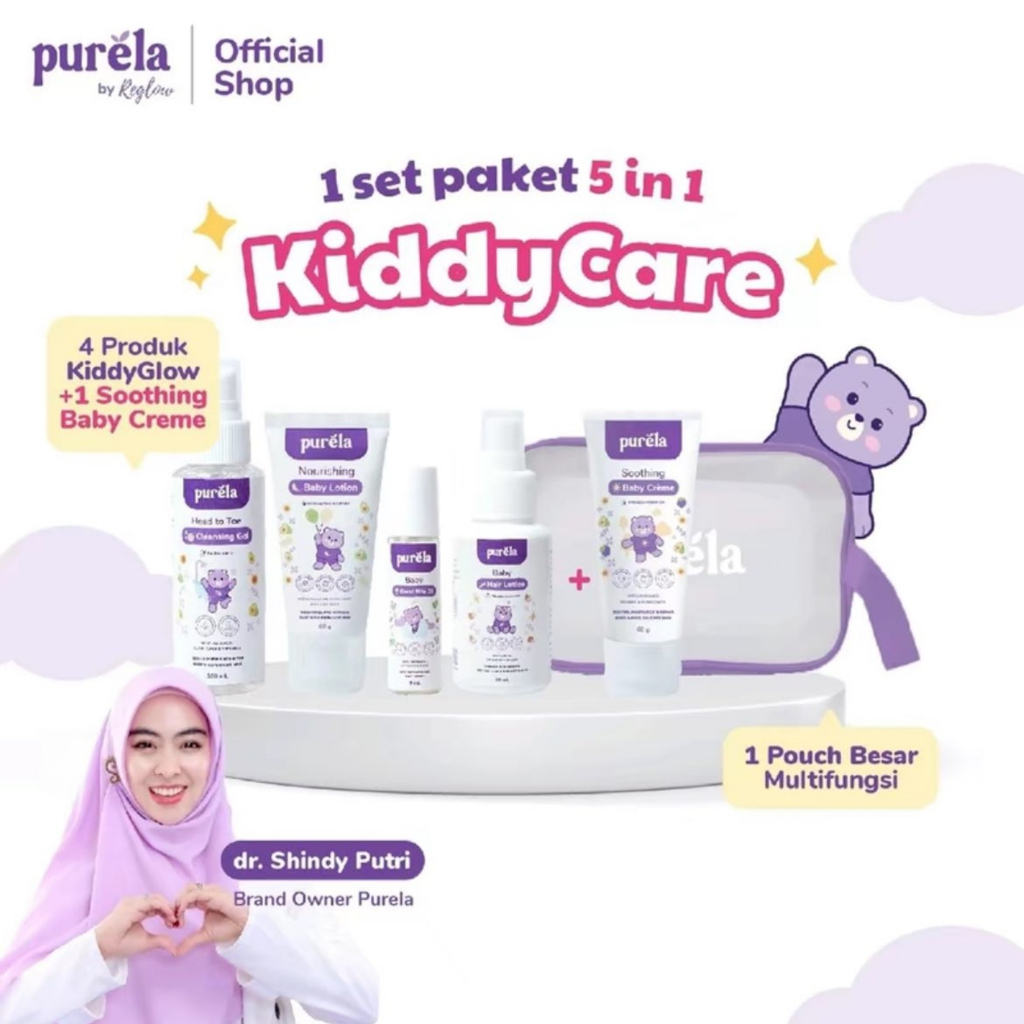 Purela Paket Kiddy Care 5in1 Perawatan Kulit Muka Badan Skincare Bodycare Baby Kids Bayi Newborn Anak Soothing Baby Crem