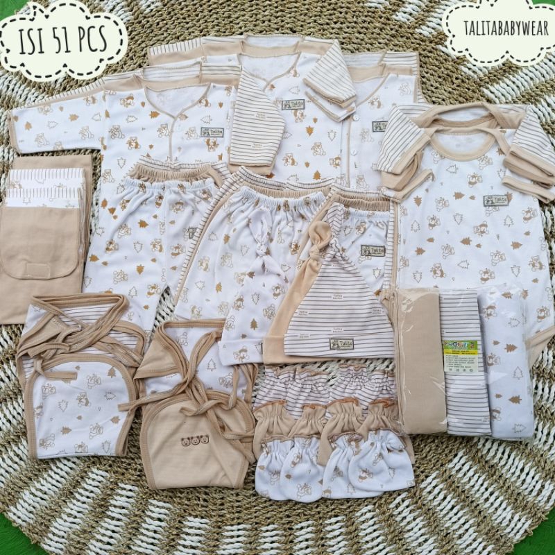 51 PCS Perlengkapan Bayi Baru Lahir/Paket Baju Bayi Seri Coklat Komplit Paket Brojol Baby Newborn talitababywear