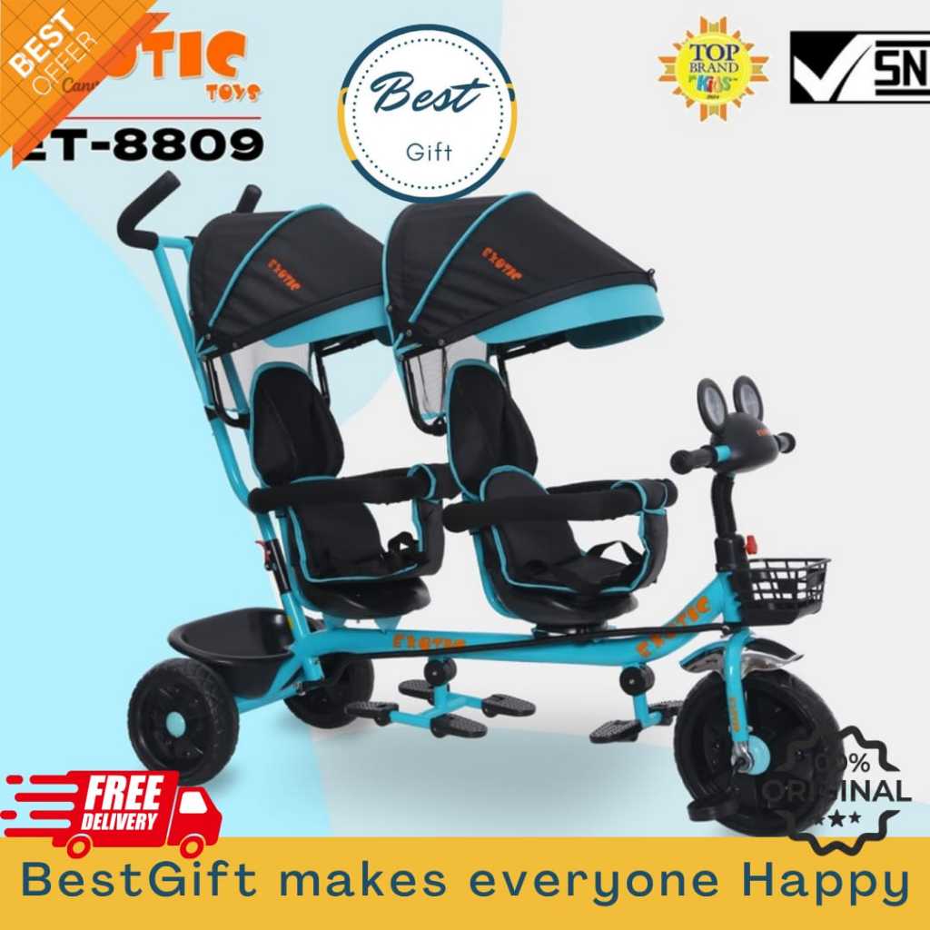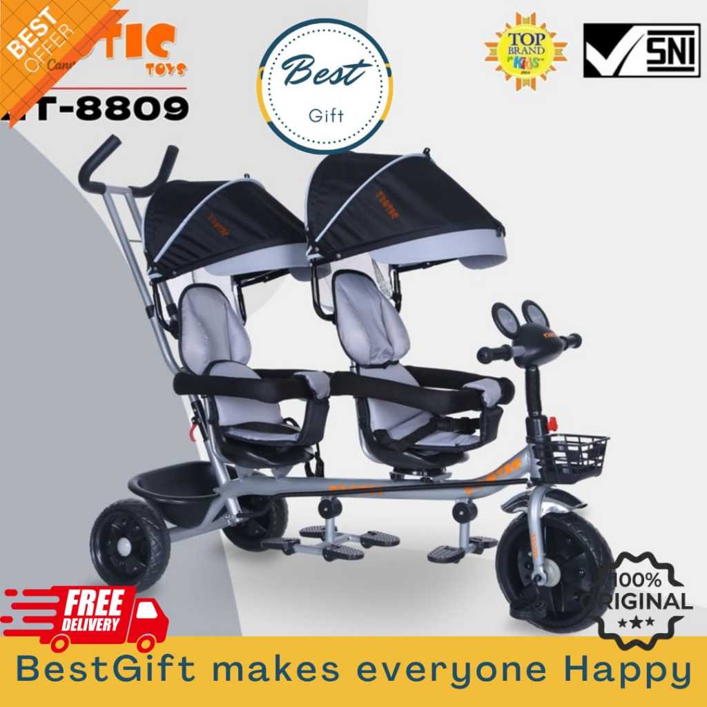 Tricycle Model ET-8809 (Twins) Exotic Warna Abu/Merah/Biru