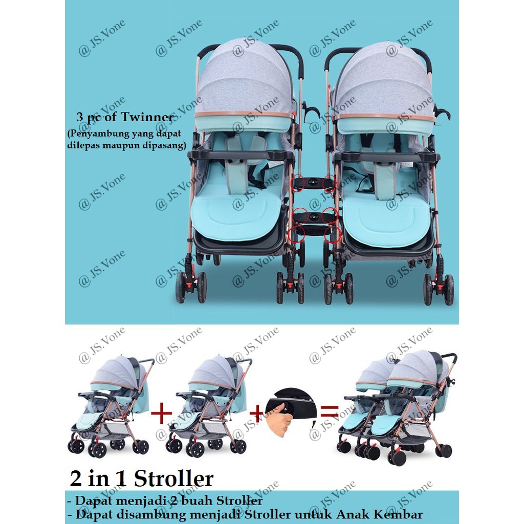 Kereta Dorong Bayi Anak Kembar / Twin Twins Baby Stroller Jade Musik Reversible Handle 2 Dua Arah
