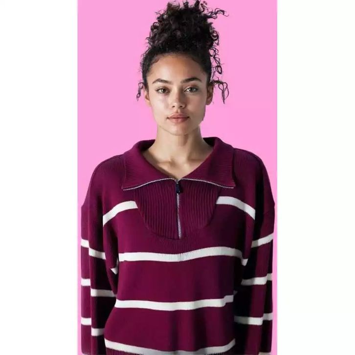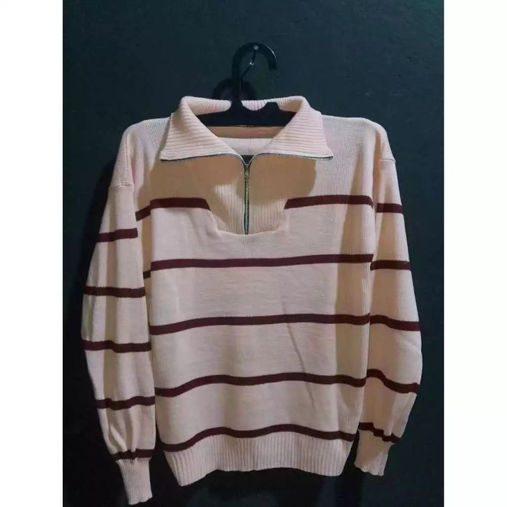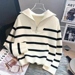 Cardigan Wanita Korean Style kardigan sleting Korea auntumn cardigan stripped zipper Cardigan rajut kekinian terbaru