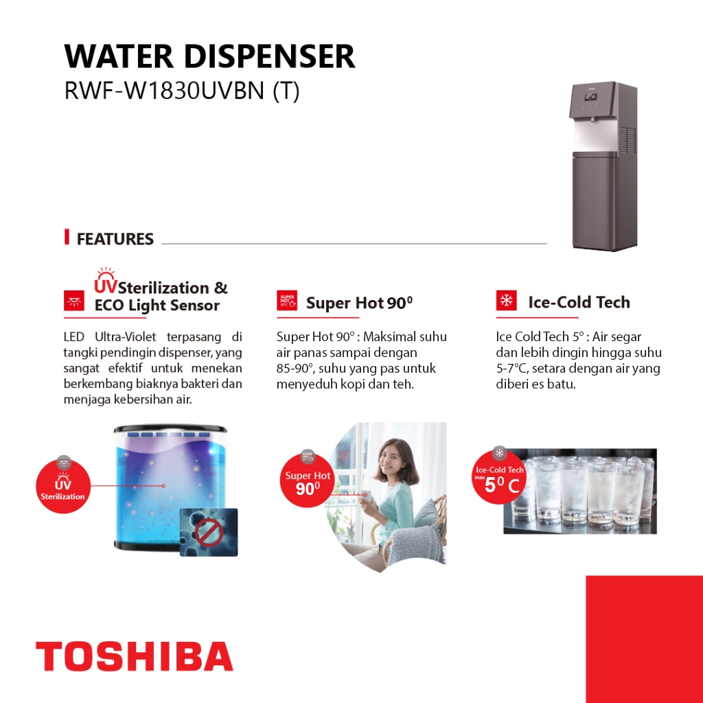 Dispenser Sharp Galon Bawah RWF-W1830UVB Air Minum 3 Kran Ic Cool Low Watt Smart Panas Dingin Multifungsi Philips Sanken