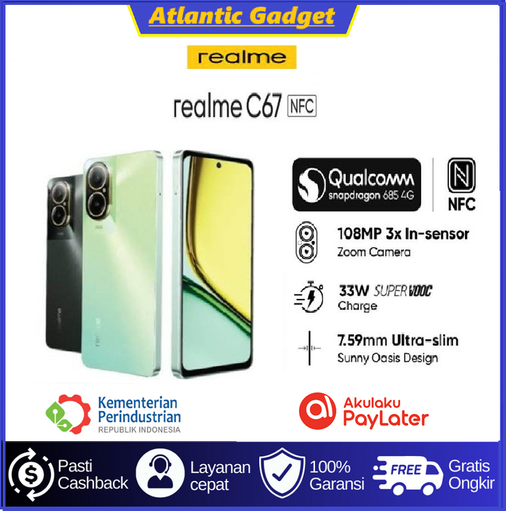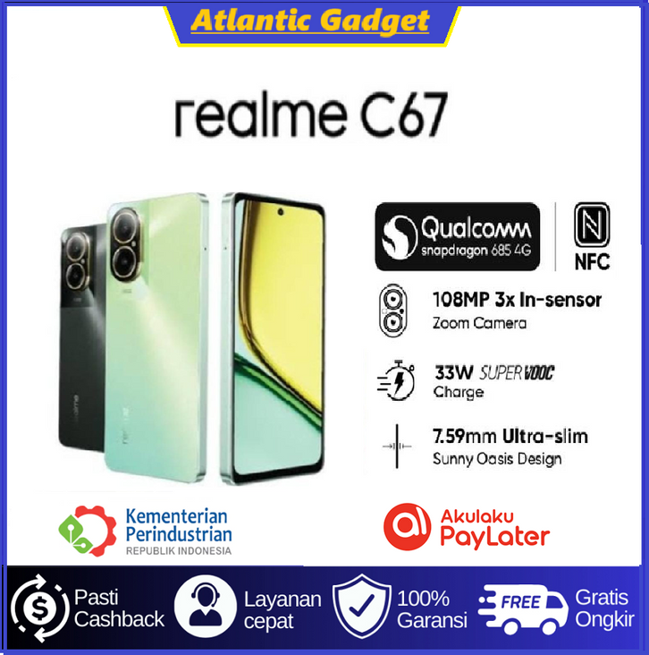 Hp Realme C67 8/128GB & 8/256GB | Snapdragon® 685 | Kamera 108MP | Baterai 5000mAh 33w Fast Charging | Stereo Speaker