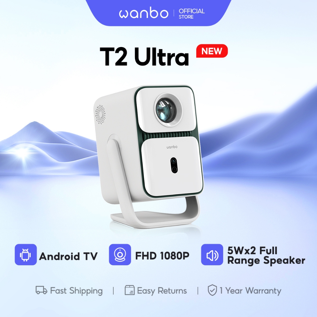 Wanbo T2 Ultra New Proyektor Android TV 5W*2 Speakers Auto-focus 1080P 500ANSI Lumens 120° Rotating Projection Android
