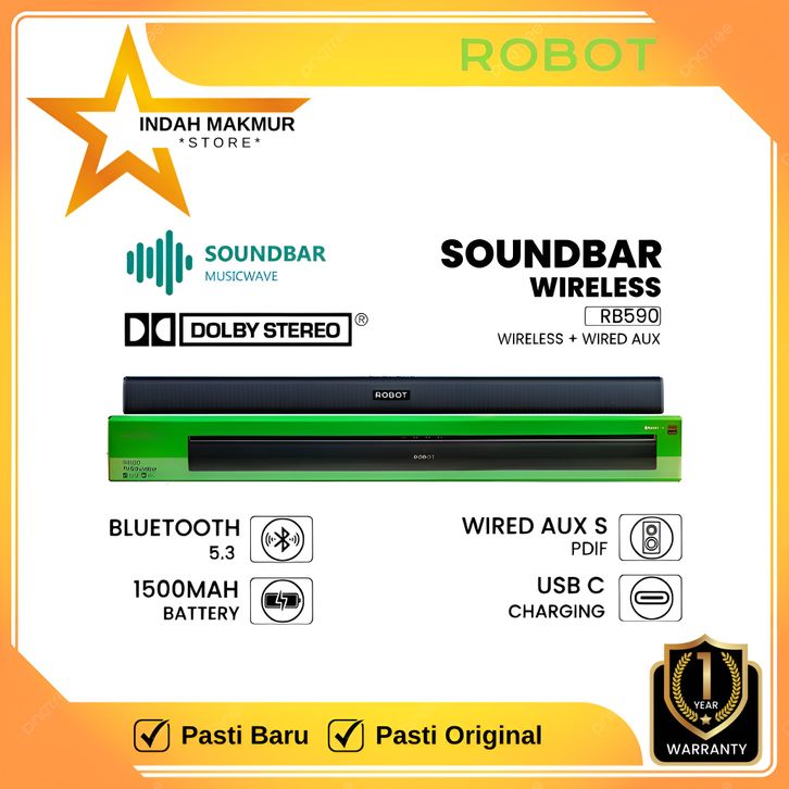 ROBOT RB590 SOUNDBAR DOUBLE BASS BOOST BLUETOOTH USB AUX TFT CARD ORIGINAL GARANSI RESMI