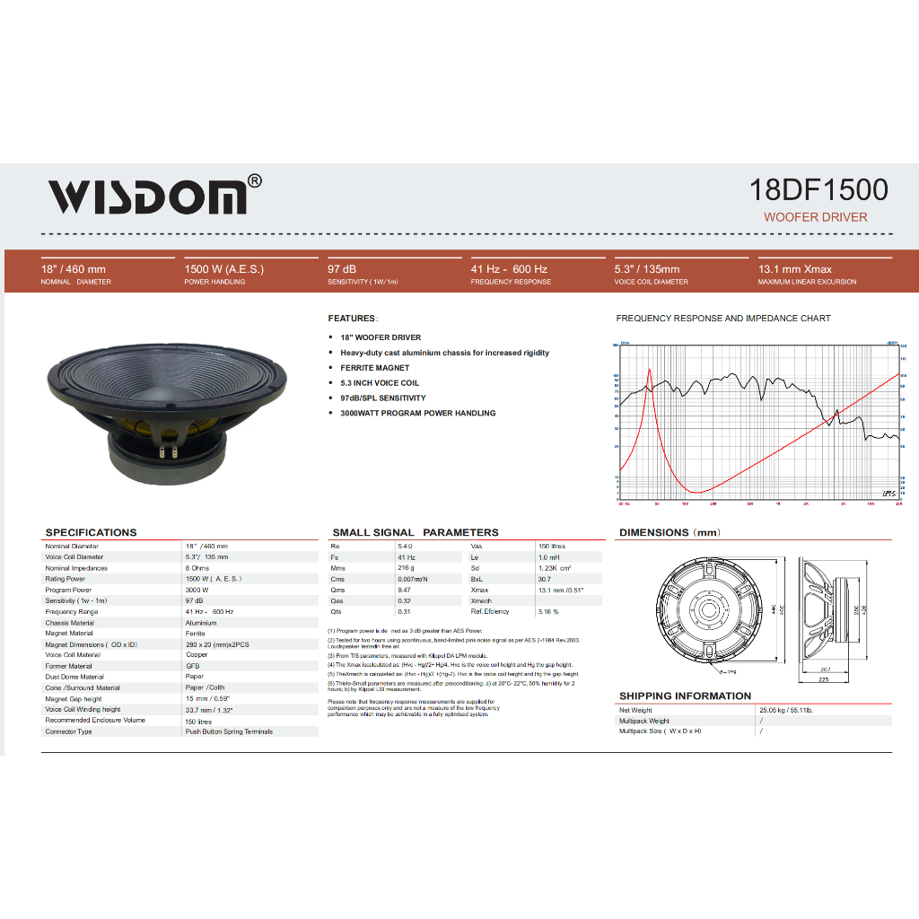 SPEAKER KOMPONEN WISDOM 18 DF 1500 / 18 DF1500 / 18DF1500 - 18 INCH