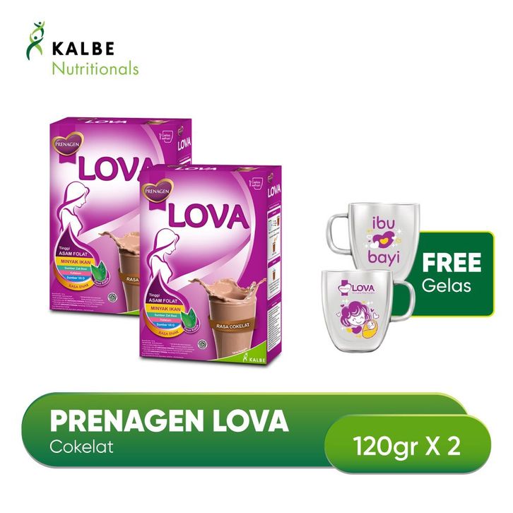 Paket Prenagen Lova Susu Ibu Hamil Cokelat - Isi 2 Box Free Gelas