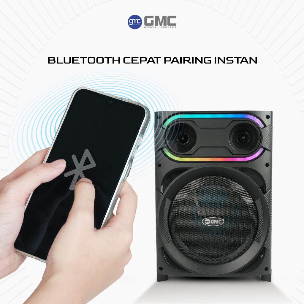 GMC Speaker 899P – Speaker Karaoke Bluetooth 6.5"– 120W, 2 Mic Wireless UHF, USB, SD, AV In, RadioFM