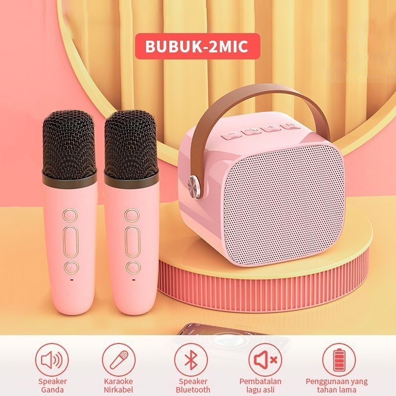 Speaker bluetooth wireless mini karaoke portable FREE 2 microphone LED PREMIUM termurah