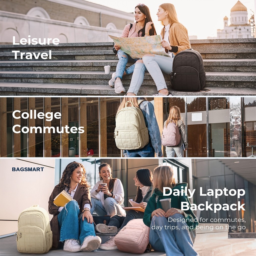 [Mall] BAGSMART Laptop Backpack 15.6Inch for Women Travel Backpack Kuliah Travel Ransel Quilted Water kekinian