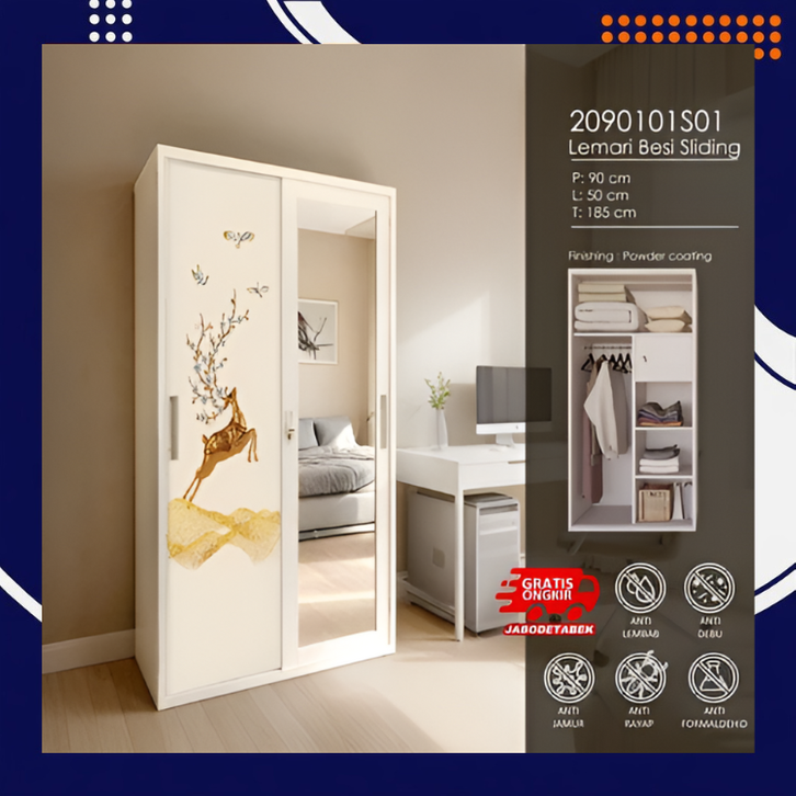 Lemari Sliding Lemari Pakaian Besi 2 Pintu Sliding Jumbo | 1 gantungan 90cm Rak Baju