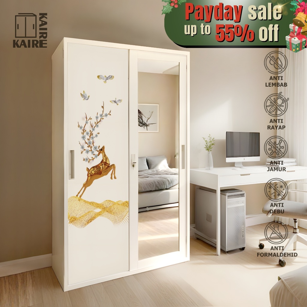 Lemari Sliding Lemari Pakaian Besi 2 Pintu Sliding Jumbo | 1 gantungan 90cm Rak Baju Wardrobe Baju Termurah