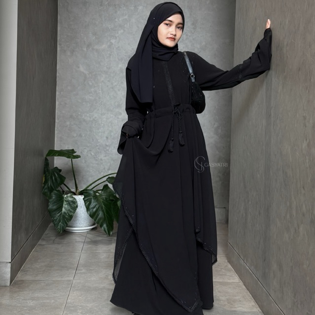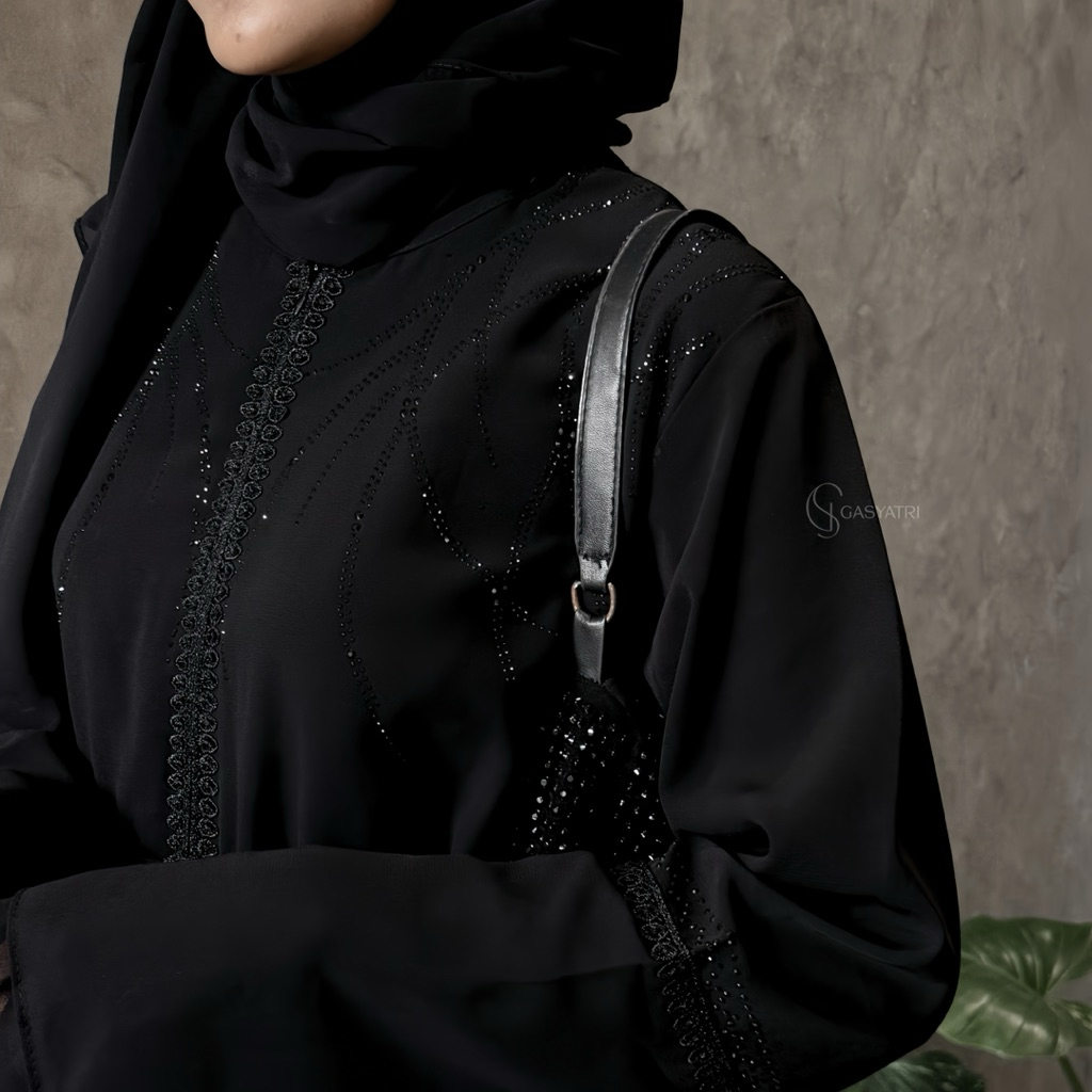 [Star]Zuyyin Abaya Gasyatri turkey syari busui remaja dewasa princess payet mata mewah hitam jetblack mix ciffon abaya p