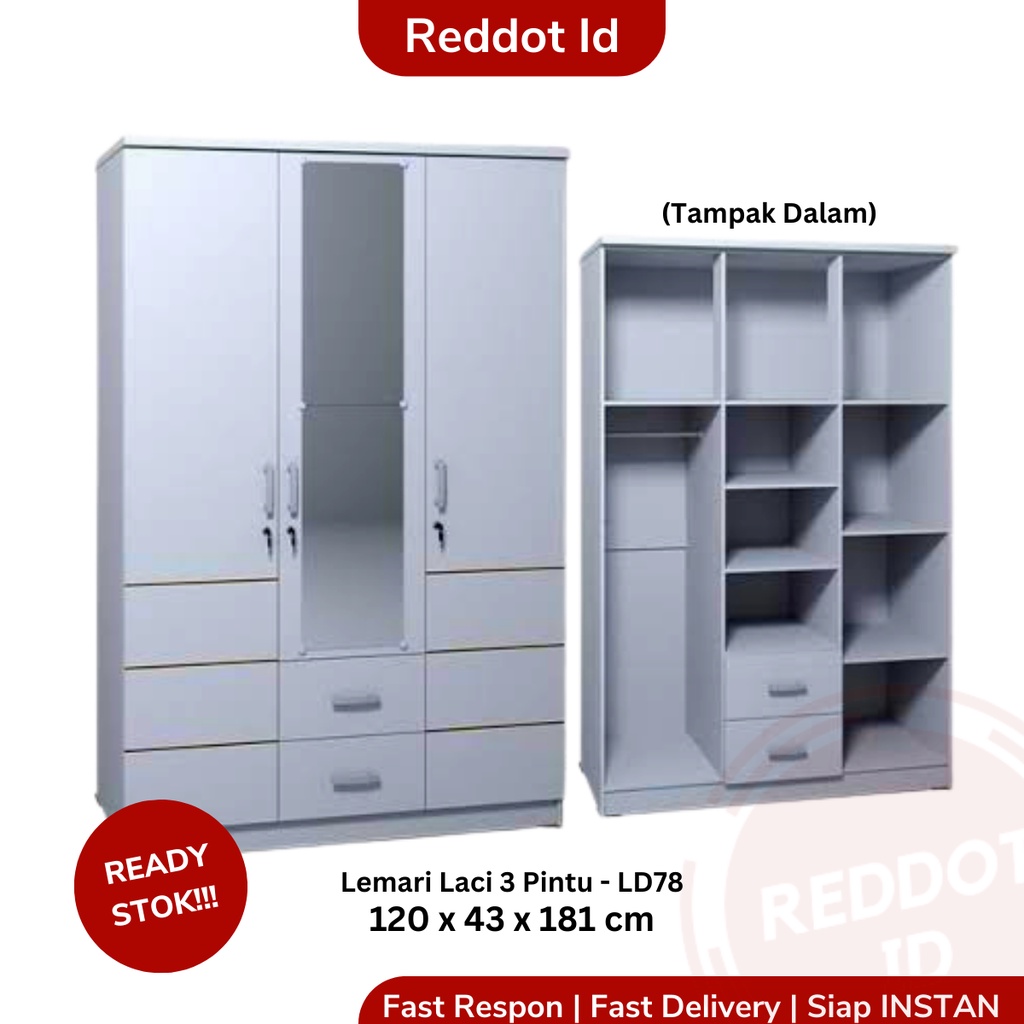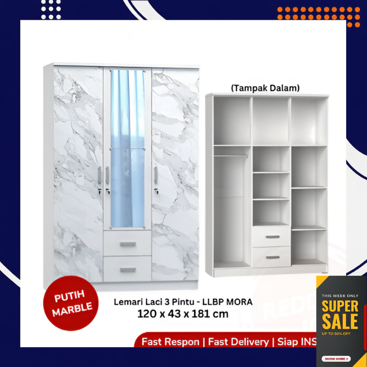 Lemari Pakaian 2 3 Pintu Minimalis Kuat & Awet Lemari Baju Motif Marmer Lemari Baju Plus Laci Lemari Baju Sudah Dirakit