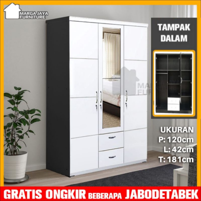 Lemari Pakaian Baju 3 Pintu Minimalis Nevada Series TERMURAH Lemari Baju Wardrobe