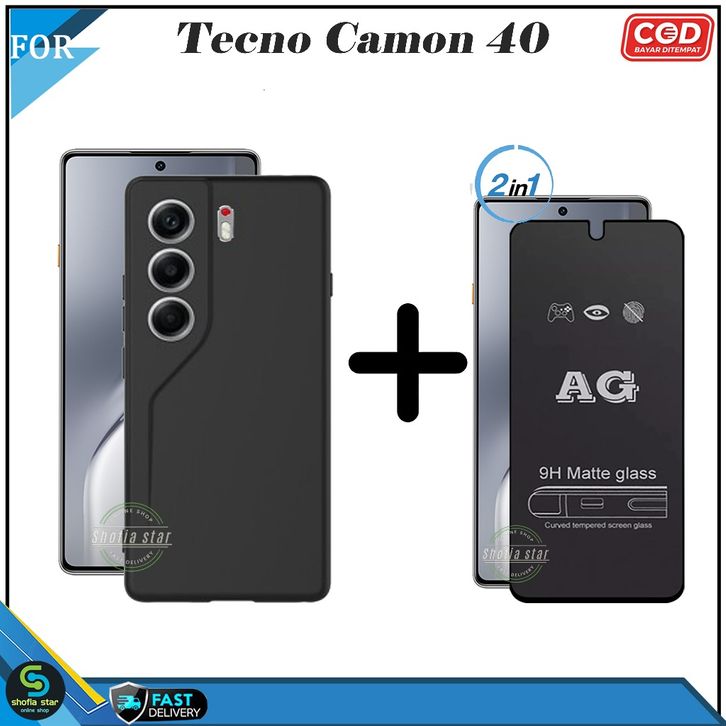 Paket 2IN1 Case Tempered Glass Anti Glare Tecno Camon 40 Softcase Slim Full Layar