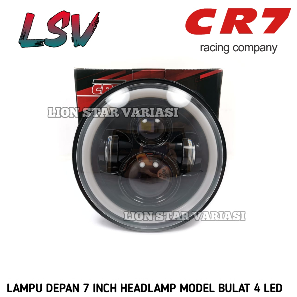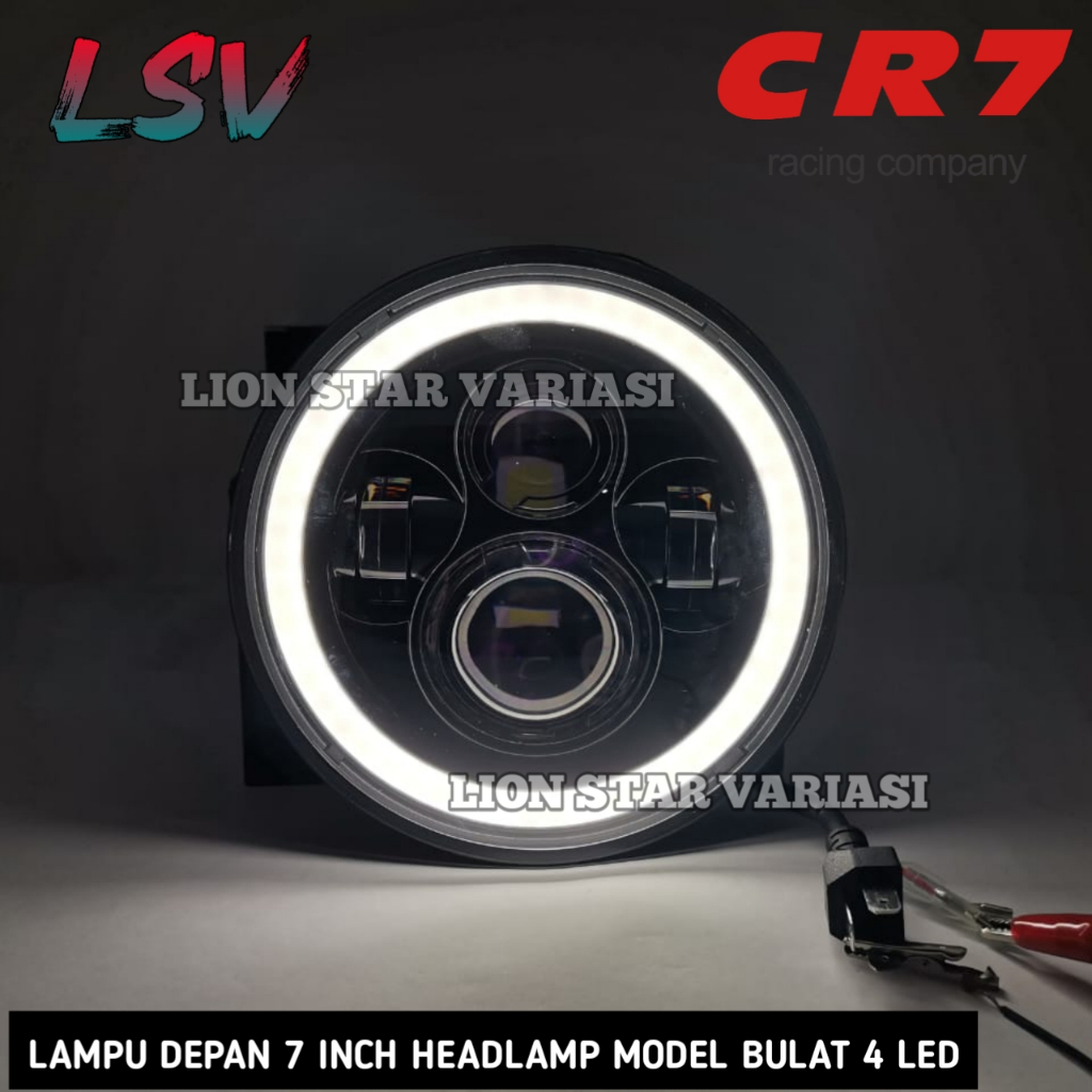 LAMPU DEPAN 7 INCH MODEL BULAT 4 MATA LED HEADLAMP UTAMA 7 INCI FOGLAMP MOTOR MOBIL HARLEY JEEP WATERPROOF UNIVERSAL