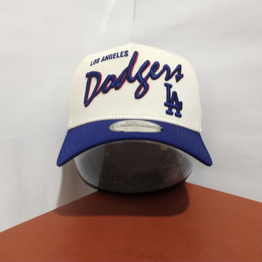 TOPI PRIA NEW ERA ORIGINAL 100% 9FORTY A-FRAME MLB LOS ANGELES DODGERS SCRIPT CHROME WHITE/BLUE NEW