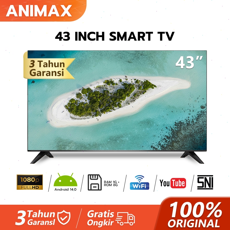 ANIMAX Smart TV 43 Inch OS Android TV 32 inch 43 inch FHD TV Digital Televisi Garansi 3 Tahun