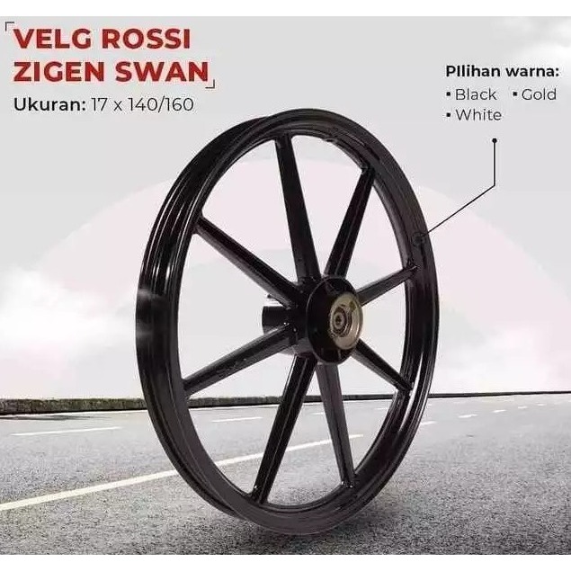 Velg Rossi Zigen Swan Palang 8 Standart Hitam dan Putih Kharisma / Supra Fit X/ Supra Fit / TERMASUK PAKCING DUS DAN BUB