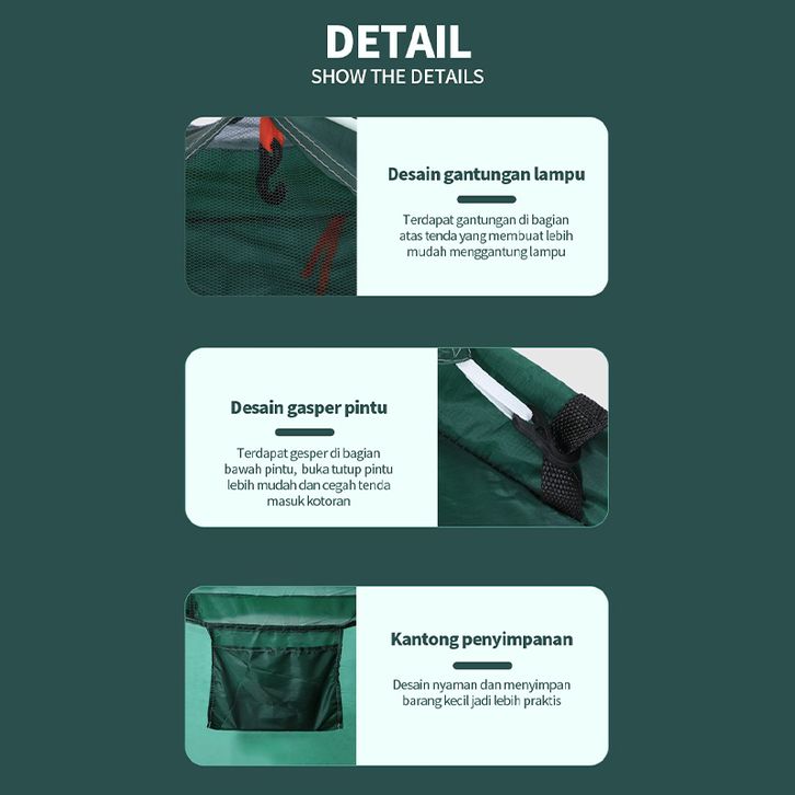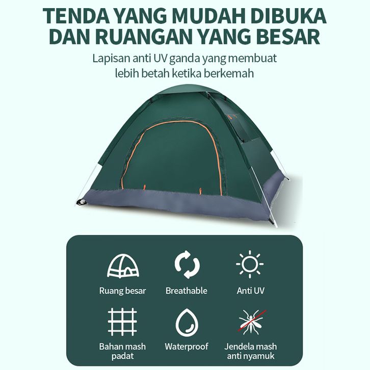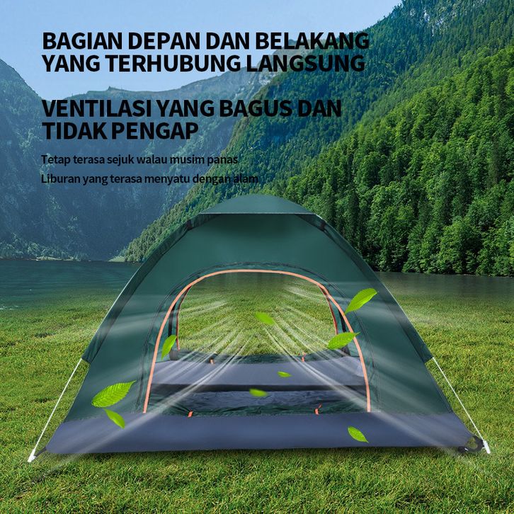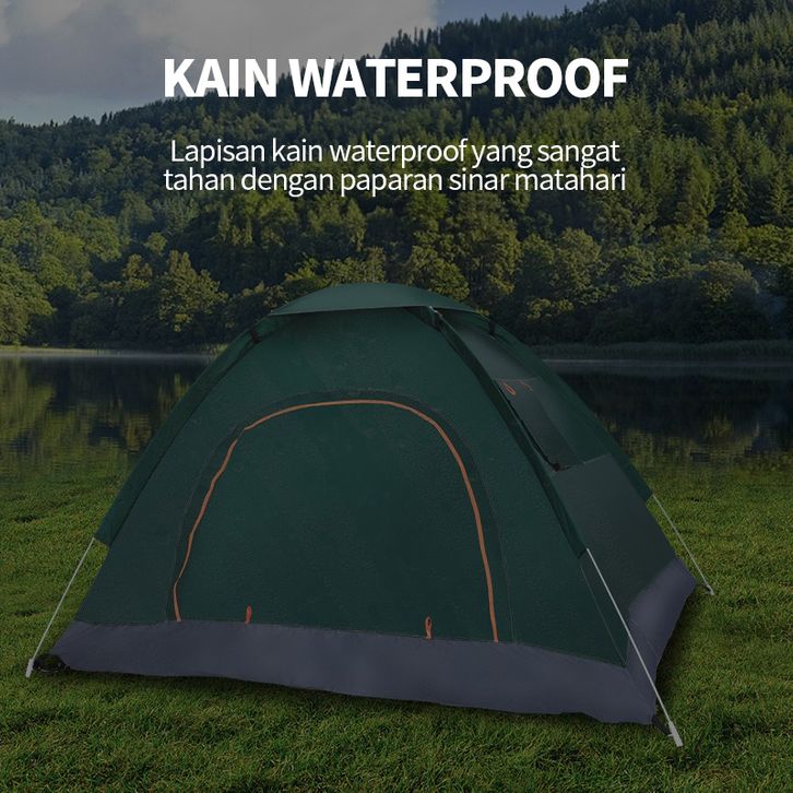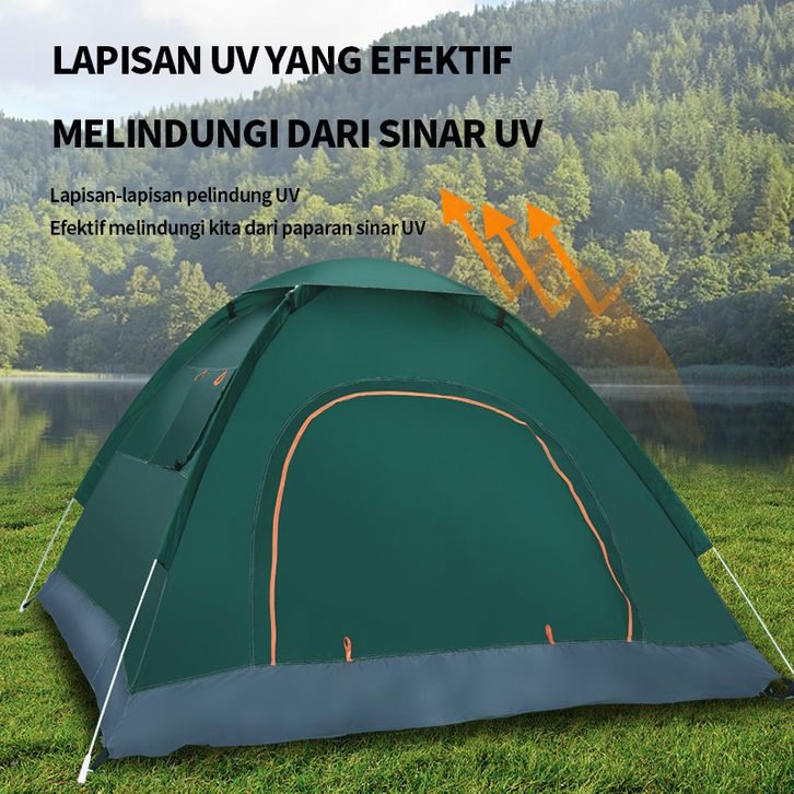 Tenda Camping 2*2M Kemah Luar Ruangan Anti UV, Tahan Air, Anti Serangga Tenda 3 - 4 Orang, Tenda Hijau untuk Dua Orang a