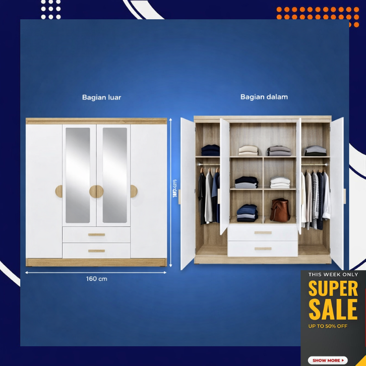 Lemari pakaian kayu Lemari Pakaian Baju 2 3 4 Pintu Murah Modern Minimalis lemari baju sliding lemari sliding kayu