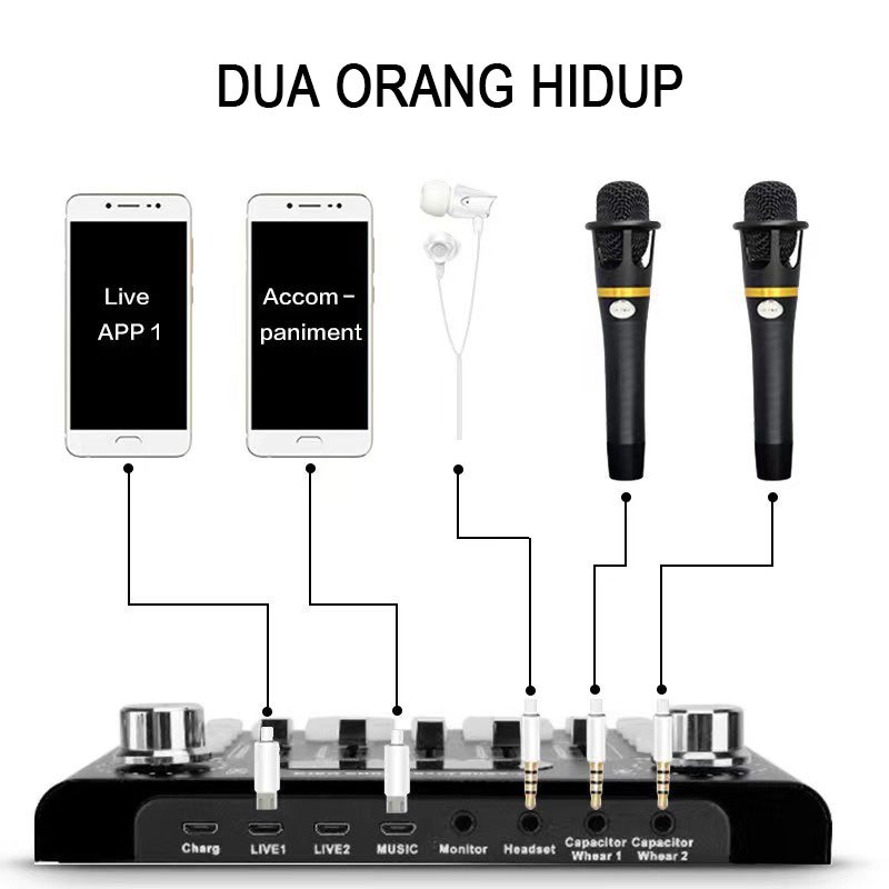 [Mall] BOMGE F9 Live Sound Card Audio Mixer, Antarmuka Audio Podcast dengan Efek DJ Mixer, Pengubah Suara dengan Efek Su