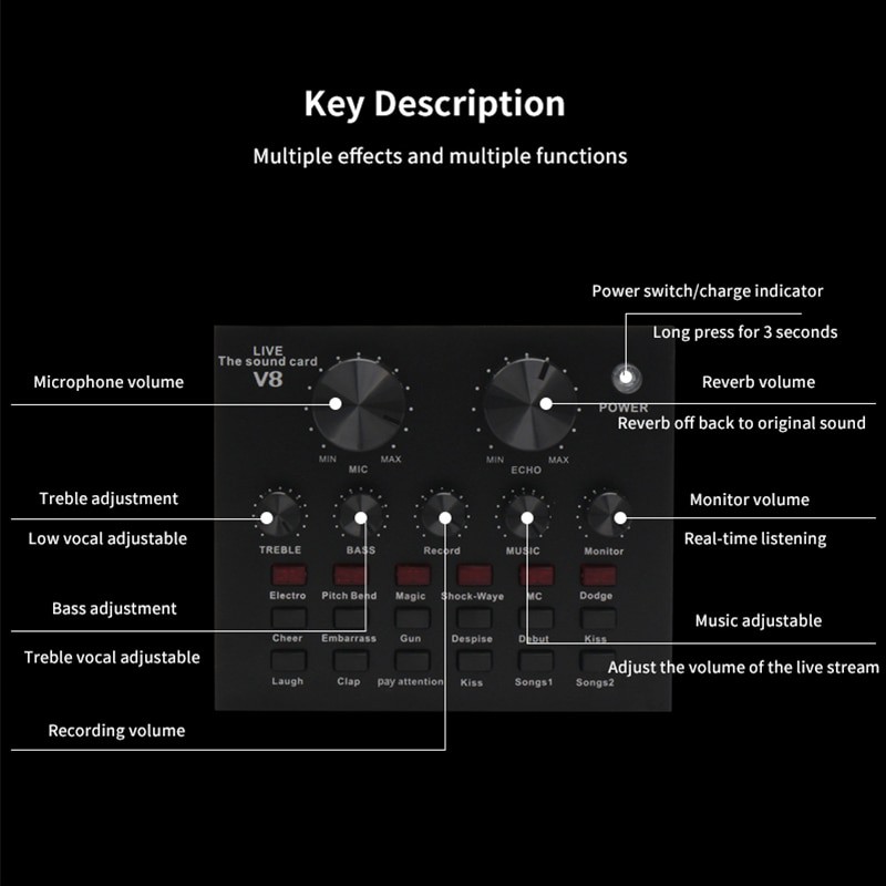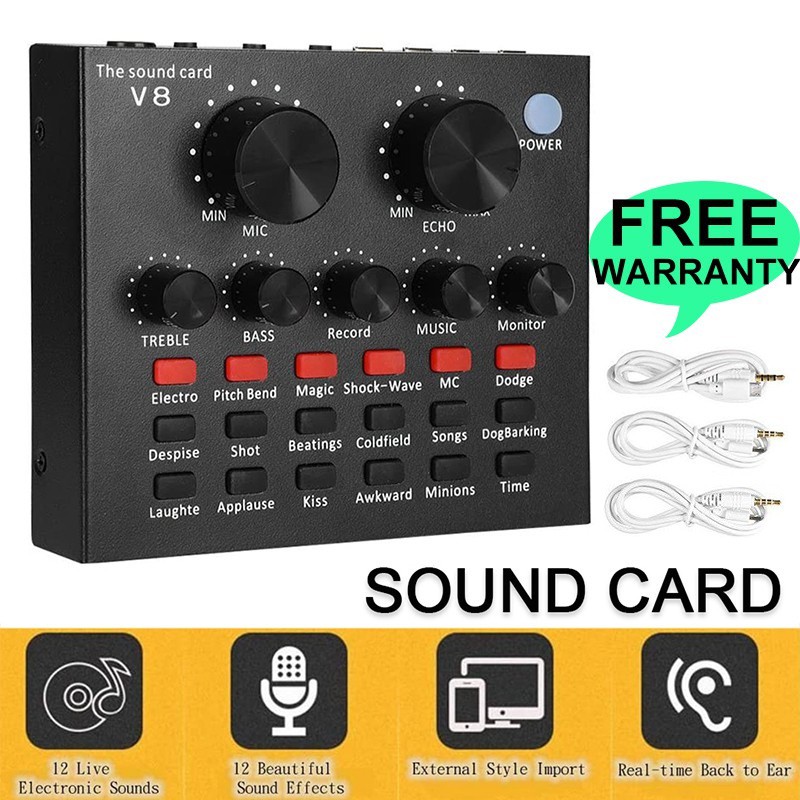 [Mall] Soundcard V8 Mixer External Soundcard V8 Audio Microphone Singing Live Sound Card V8 Sound Effect Handphonetiam