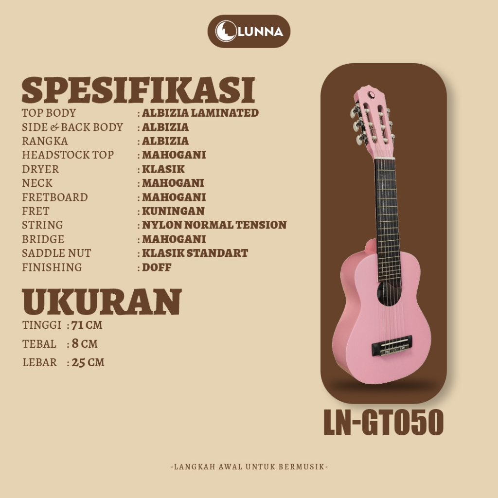 [Mall] LUNNA Gitar Lele LN - GT050 Senar 6 Nilon Model Bulat