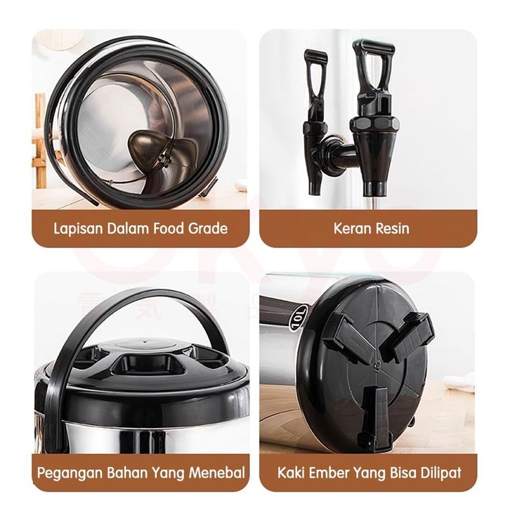 Milk Tea Bucket Dispenser Air Milk Tea Termos Milk Tea Dispenser Air Stainless Steel SUS304 Dispenser Prasmanan 8/10/12/