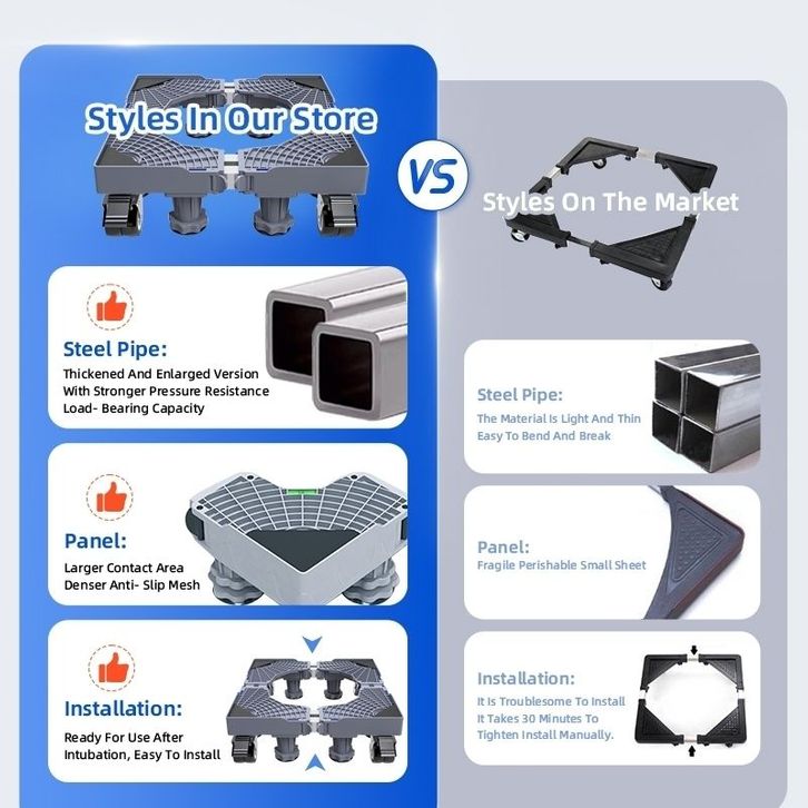 【.】Alas Mesin Cuci Stainless Steel yang Dapat Disesuaikan / Alas Kulkas, Dudukan Mesin Cuci /kaki kulkas roda 4/ roda