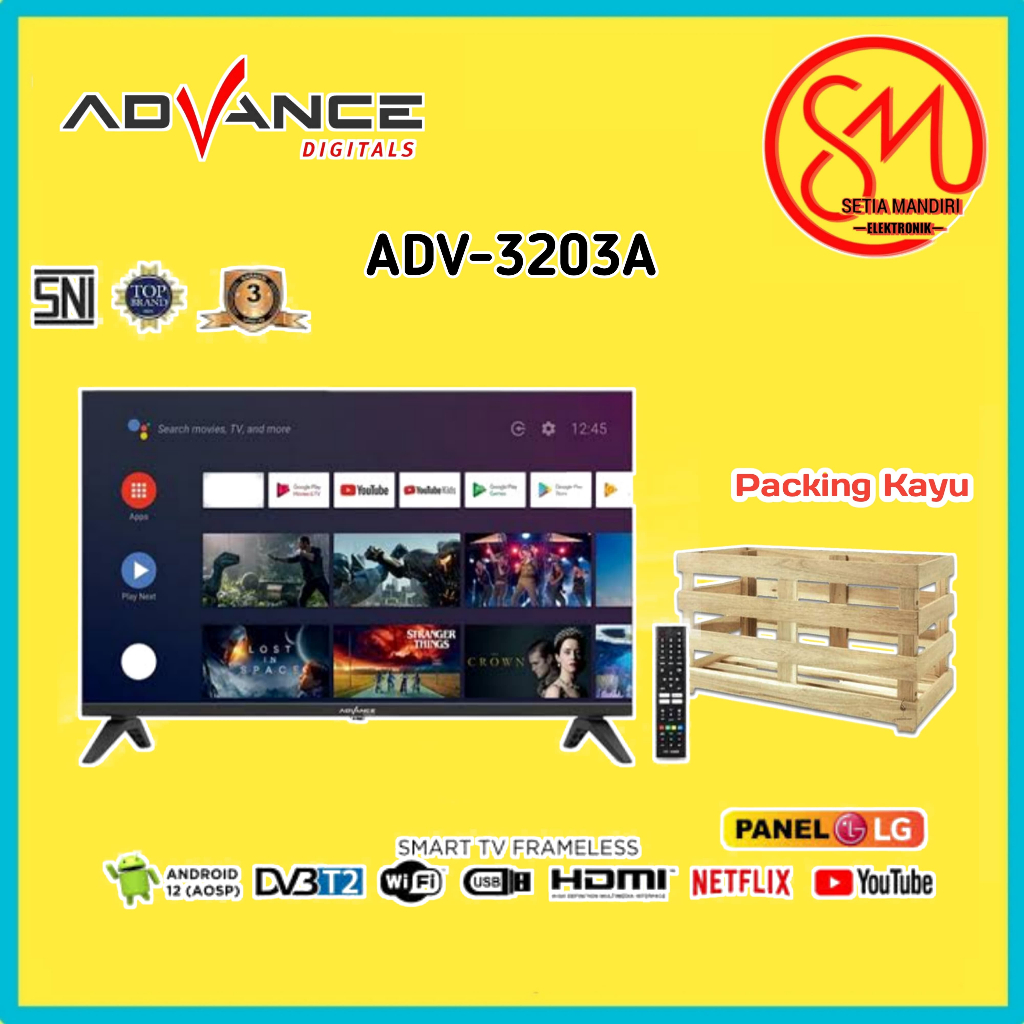 ADVANCE Smart Android TV LED 32 Inch ADV 3203A / 3209A Televisi Digital DVB-T2 Panel LG WiFi