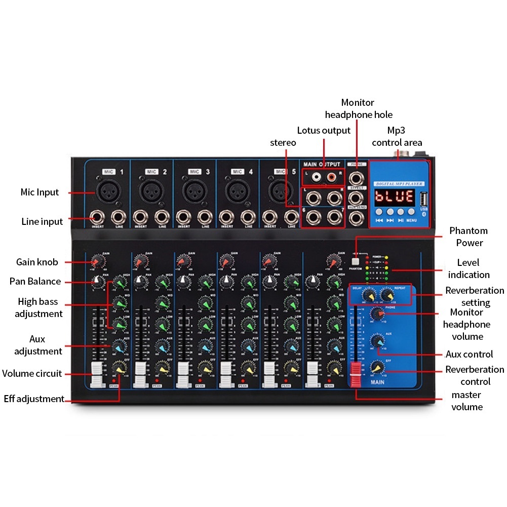 [Mall] MG04BT/MG07BT Audio mixer DJ remix 4ch/7ch mendukung bluetooth /USB/PC/MP3 Portable Mixer Audio
